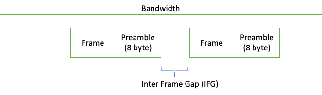 Maximum Throughput 는 Frame size 가 Maximum MTU (i.e., 1518 byte)일 때의 데이터 크기 / s