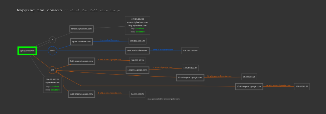 그래서 DNSDumpster 사이트를 통해 DNS 서버가 제공하는 서브도메인 정보를 확인할 수 있습니다.